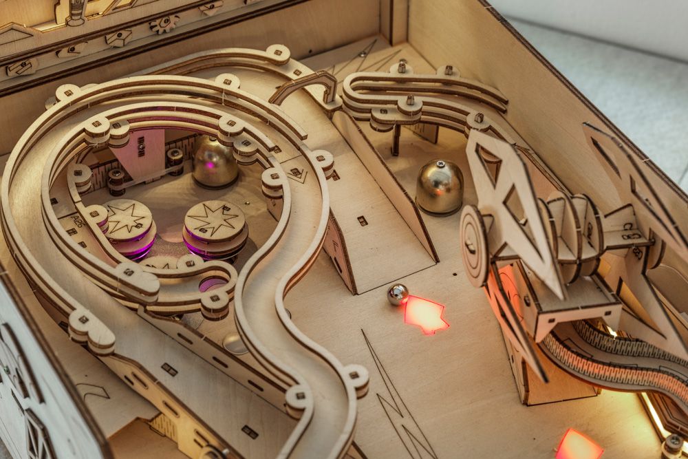 Pinball-samlesættet er ideelt for voksne og de største børn, og giver en udfordrende, underholdende og analog aktivitet med mange timers sjov fordybelse, hvor der både skal skrues og samles ledninger.