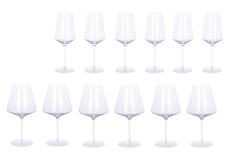 Glassenes markante skænkelinje gør det tydeligt, hvortil man bør skænke vinen, for at have den korrekte mængde luft til at kunne slynge vinen rundt i glasset, hvilket giver optimale betingelser for vinens smagsnuancer for at udfolde sig.