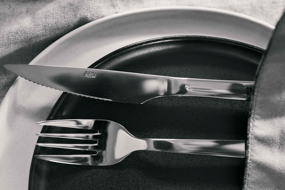 Stilrent steakbestik fra Aidas Raw-serie, der er skabt til den nordiske borddækning og designet i samarbejde med livstilsredaktør og influencer Christiane Schaumburg-Müller.