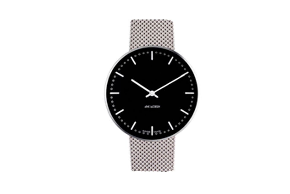 Arne Jacobsen City Hall armbåndsur, sort med stål mesh rem, 40 mm
