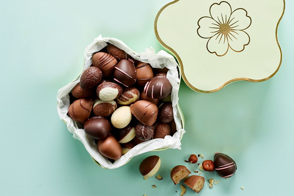 Blomsteræske med marcipan- og luksus æg, 500 g