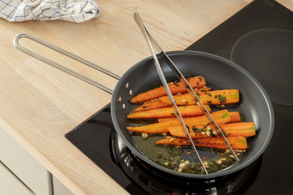 Panden kan anvendes på alle varmekilder, tåler ovntemperaturer op til 380 grader og kan rengøres i opvaskemaskine.