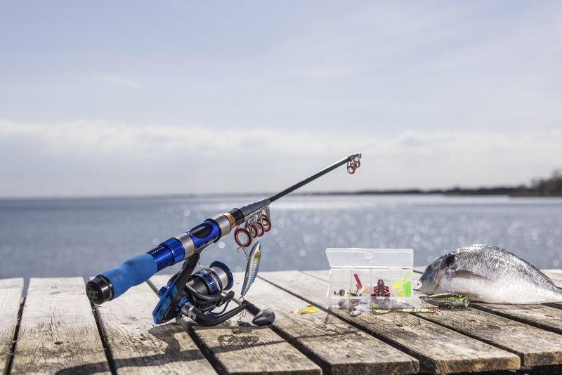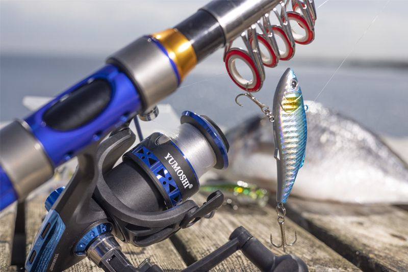 Fiskesættet leveres desuden med flere blinks, kroge og gummimadding i en smart æske samt en rejsetaske der kan holde styr på hele sættet.
