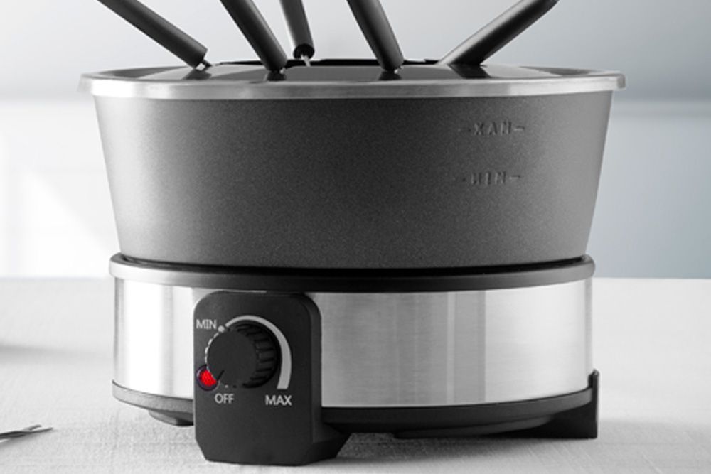 Stil fonduesættet på bordet, så I kan nyde noget kvalitetstid sammen under middagen. Denne meget alsidige fonduegryde er udstyret med en justerbar termostat og en aftagelig gaffelring, så du kan bruge den til mange forskellige retter, f.eks. schweizisk ostefondue, chokoladefondue eller en traditionel fondue med olie.