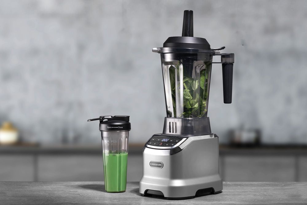 Powerblenderen fra House of Chefs er en kraftfuld multifunktionel blender, der kører med hele 22.000 omdrejninger i minuttet og 1800 Watt, hvilket gør den ideel til alt slags indhold, hvad enten det er isterninger, smoothies, supper, dip eller cocktails.