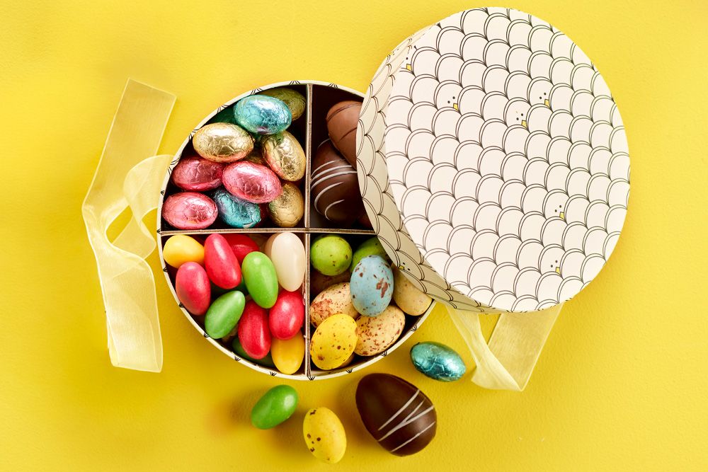Mønstret hatteæske med blandet påskeæg - 400 g