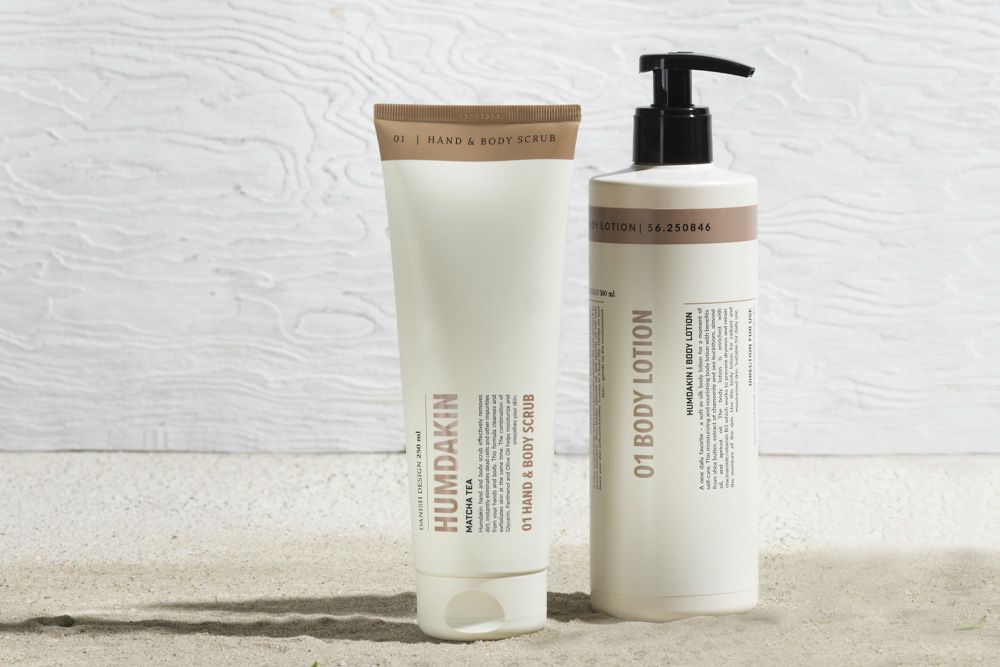 Humdakin hånd- og bodyscrub er med Matcha te, olivenolie, Glycerin og panthenol. Den er fugtgivende og hjælper med at fjerne døde hudceller.