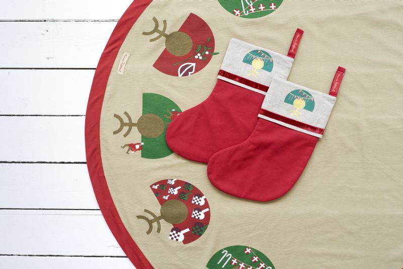 Julesokkerne er syet i kraftig kanvas med kantbånd og med tekstilfor på indersiden.