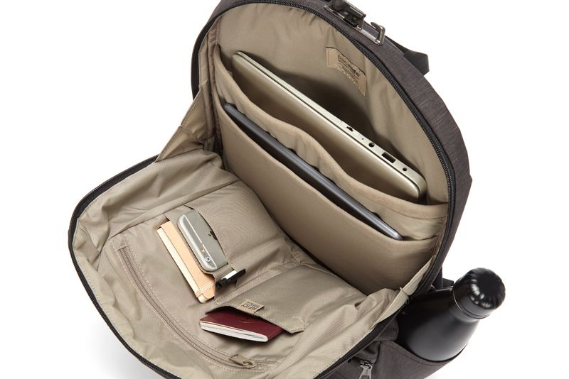 Pacsafe er firmaet bag en række smarte og tyverisikrede tasker, der er fremstillet af 100% genanvendt polyester og plastik fra vandflasker.