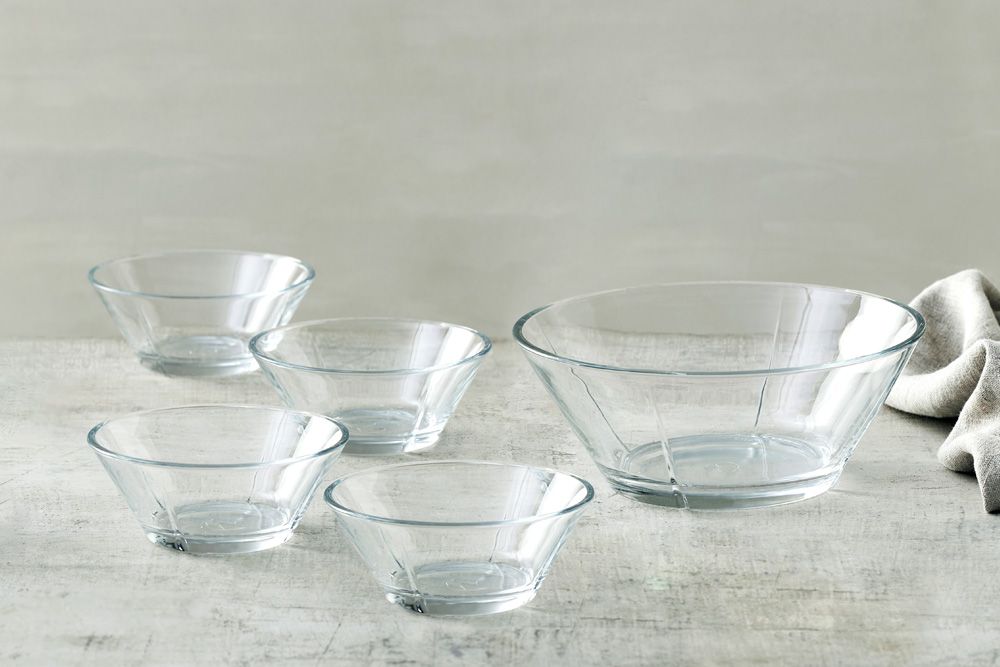 Salatskålens størrelse gør, at den kan anvendes til utallige formål, mens de fire små skåle er perfekte til servering af portionsanretninger eller til snacks eller morgenmad.