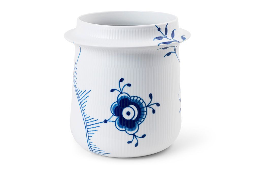 Det Blå Mega Riflede mønster forener tradition og fornyelse i det tidløse design, hvilket fremhæver de elegante former og det fine håndværk, der kendetegner Royal Copenhagen.
