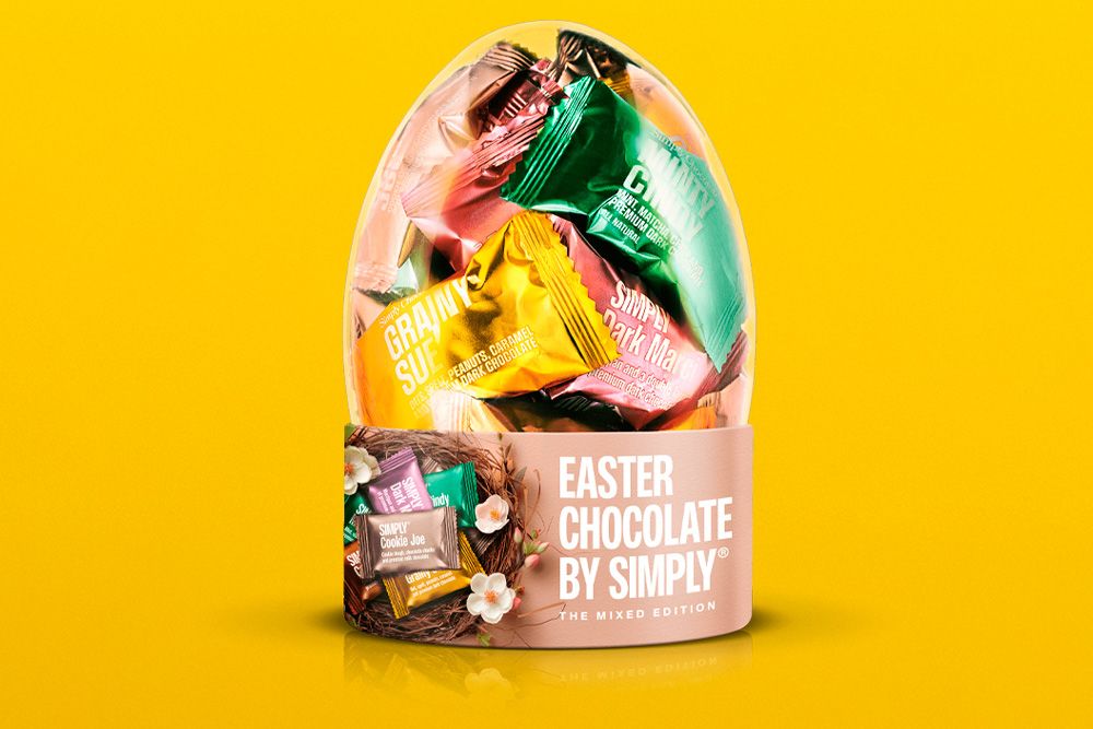 Et premium påskeæg fra Simply Chocolate fyldt med 25 lækre bites. The Mixed Edition består af Crispy Carrie, Cookie Joe, Minty Cindy, Dark Marci og Grainy Sue og giver en farverig blanding af sprøde, søde og intense smagsoplevelser i et moderne påskeformat.