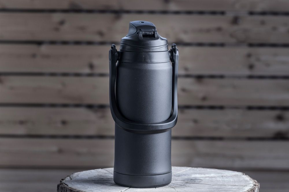 Termoflasken er fremstillet i rustfrit stål, med en mat sort coating samt et smart, rillet silikonegreb, der sikrer at termobeholderne ikke glider ud af hænderne.