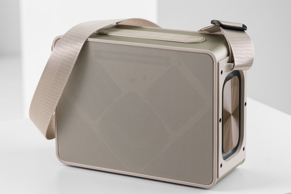 Højttaleren holder strøm i op til 10 timer og oplades med et USB-C stik. Højtaleren er fremstillet med et ydre i rustfrit stål samt et jernnet ved højtalerne.