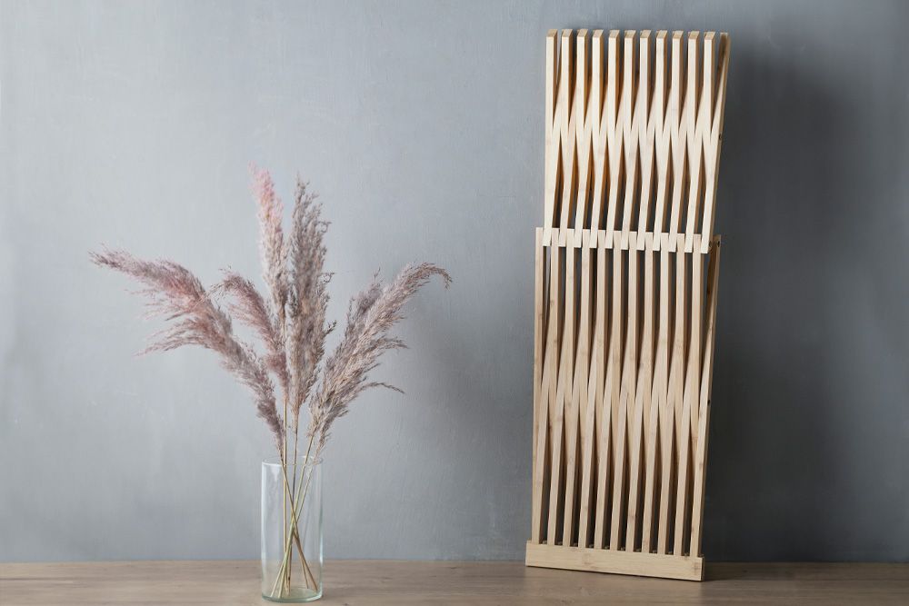 Skamlen er fremstillet i bambus og den smarte X-form gør at stolen nemt kan klappes sammen og gemmes væk.