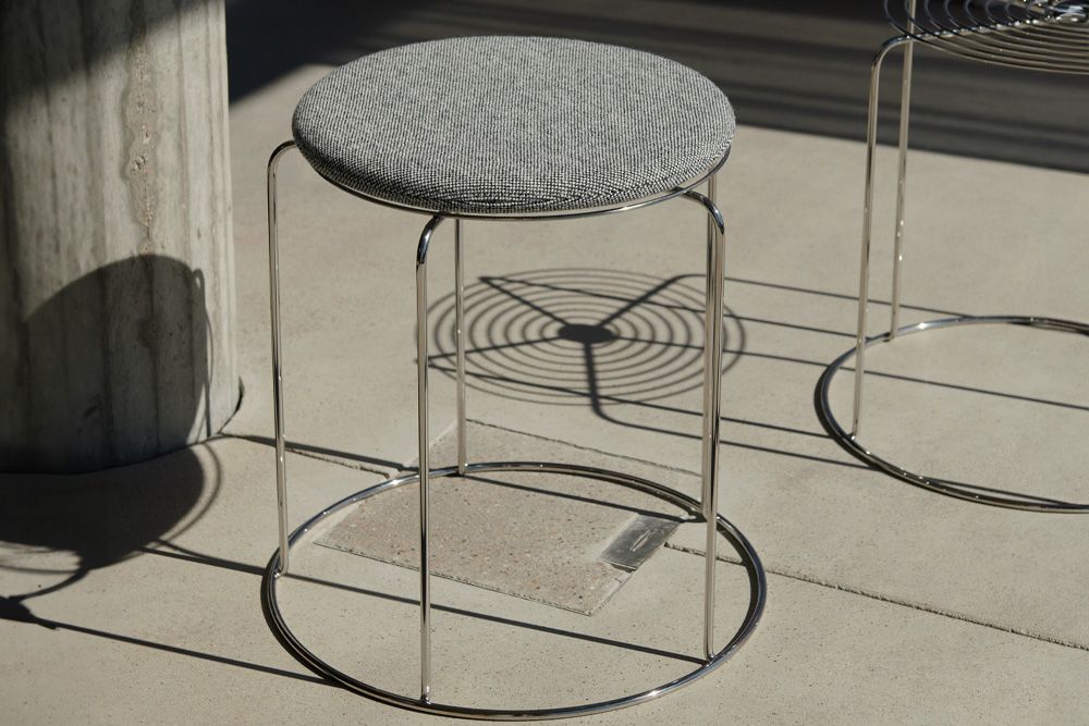 Den stabelbare skammel er fremstillet af wire i rustfrit stål, der gør den både robust og elegant og trækker tydelige paralleller til Pantons tidligere design. Skamlen er lige så anvendelig som en ekstra siddeplads, som den er som et elegant sidebord eller en piedestal til en blomst.