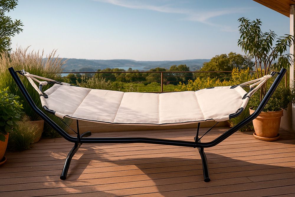 Den kan bære op til 150 kg og inviterer til mange timers ren afslapning under åben himmel.