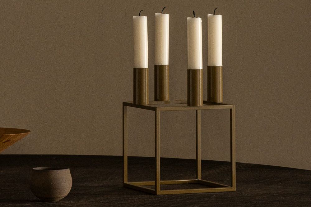 Den ikoniske Kubus lysestage er designet af Mogens Lassen, som er en af pionererne inden for dansk funktionalisme og internationalt anerkendt for sin karakteristiske arkitektur.