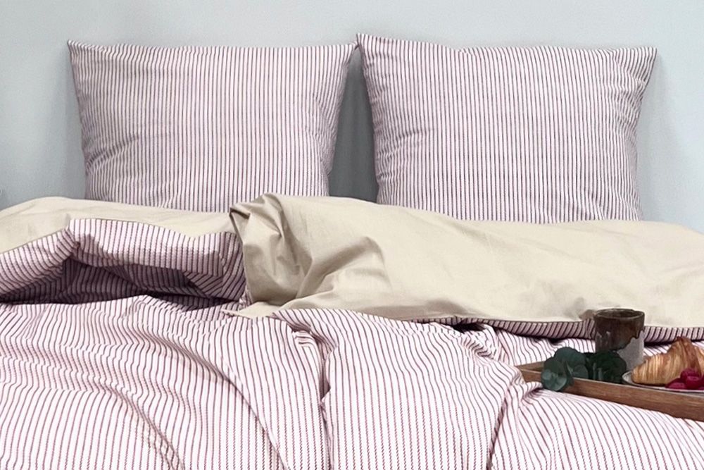 Sengetøjet fra Cotton Lover er både blødt, lækkert og stilrent. Det fine dobbeltsidede design har et stribet, nautisk rebmønster i 'Apricot Brandy' og sandfarvet på den ene side og ensfarvet på den anden, hvilket giver mulighed for at ændre udseende alt efter humør uden at skulle skifte sengetøj.